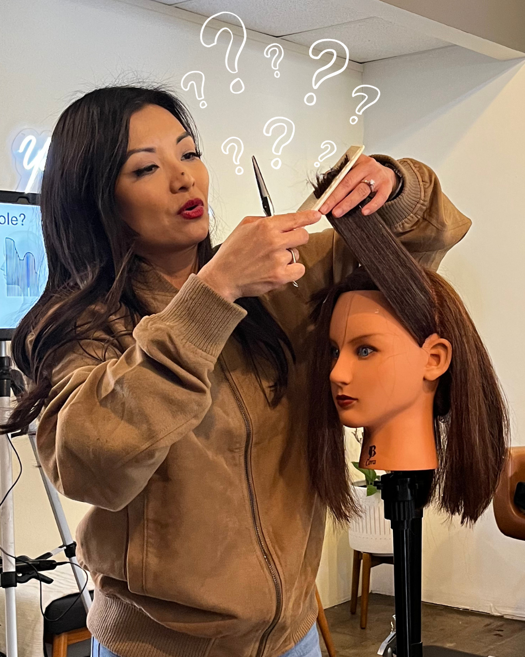 This is a collaborative process. We're thinking through the haircut together, in real time, and watching the cause and effect unfold.